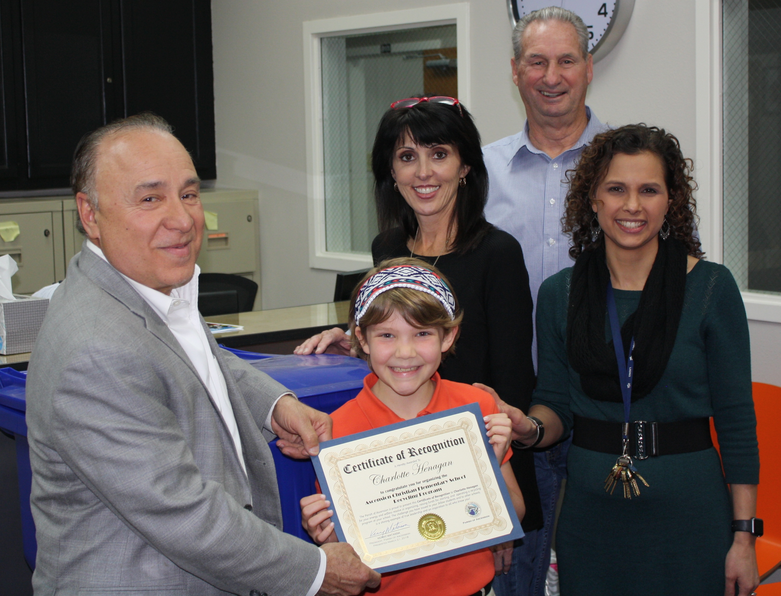 President Matassa Recognizes Charlotte Henagan for Recycling